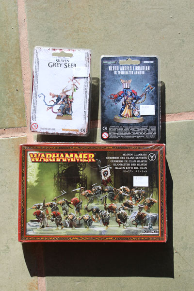 I bought Skaven Clan Rats, Space Marine Librarian and Grey Seer and two Citadel Paints – Mephiston Red and Stormvermin Fur.