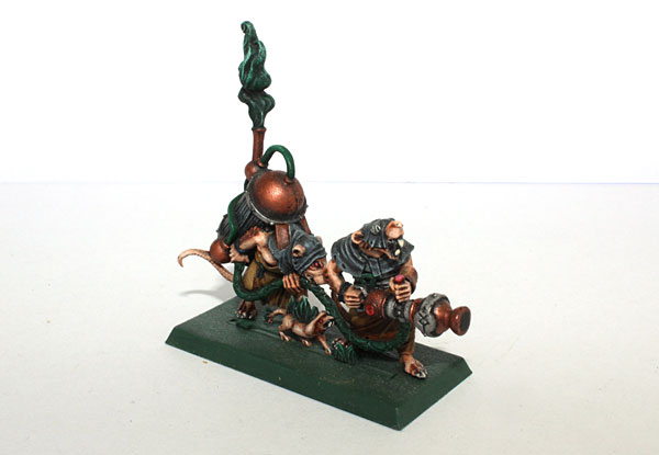 At the moment I have 2 Warpfire Throwers, one Ratling Gun and one Poisoned Wind Mortar. For the first battle I chose Warpfire Thrower (plastic model from Island of Blood) to company Stormvermin unit and Ratling Gun along with Clanrats.