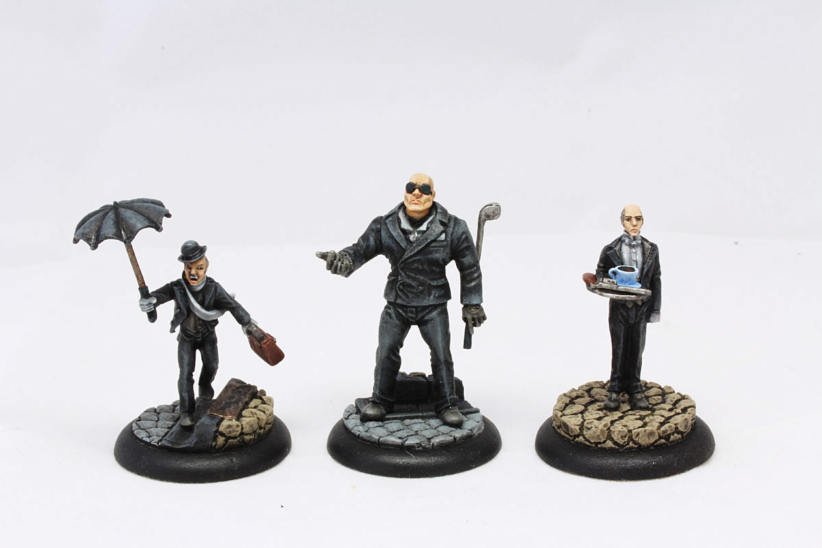 Bruiser and two butlers. I decided to paint them all together in similar colour scheme. Black suits with white and greys add-ons.